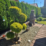Działka w pełni zagospodarowana – piękny ogród z drewnianą altaną i bujną zielenią, idealny do wypoczynku lub spotkań w kameralnej atmosferze.