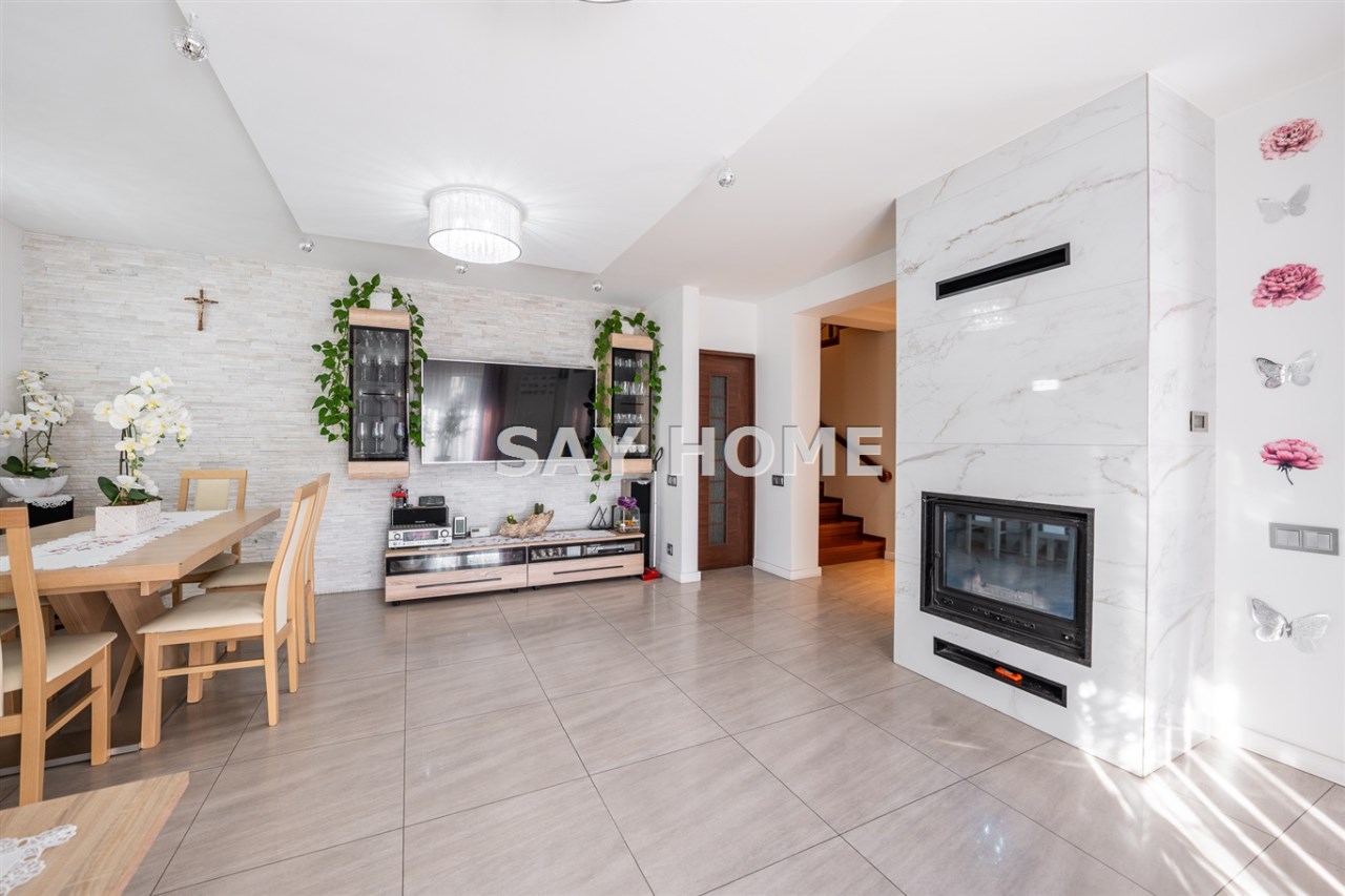 • salon z kominkiem (może pełnić funkcję reprezentacyjnego biura lub sali spotkań),